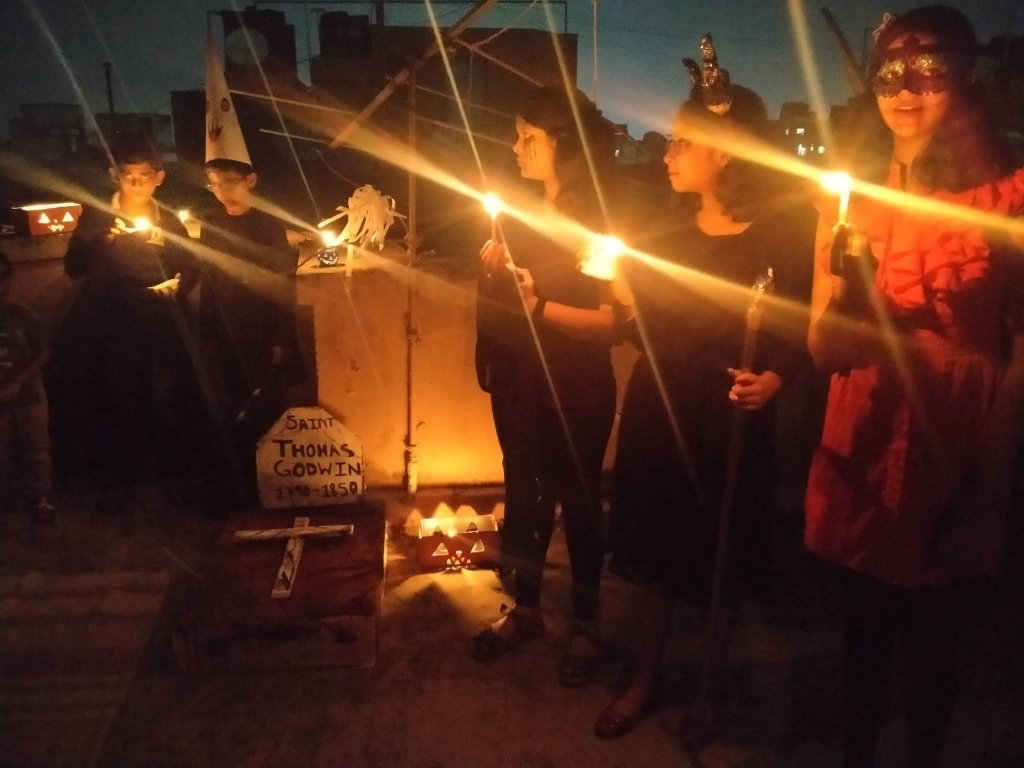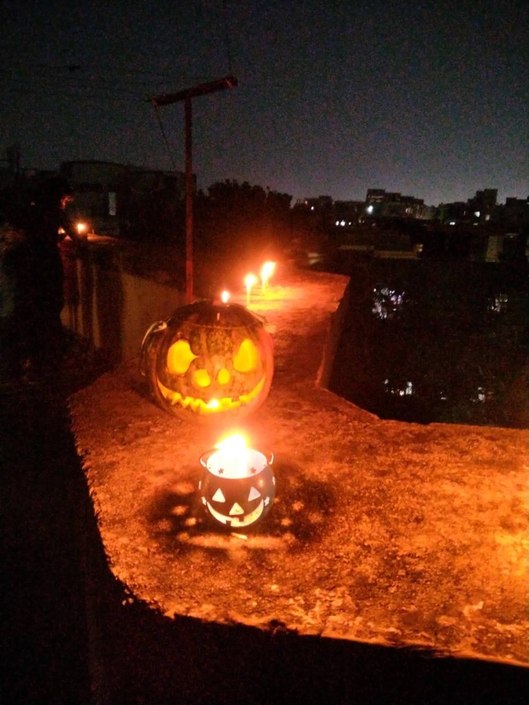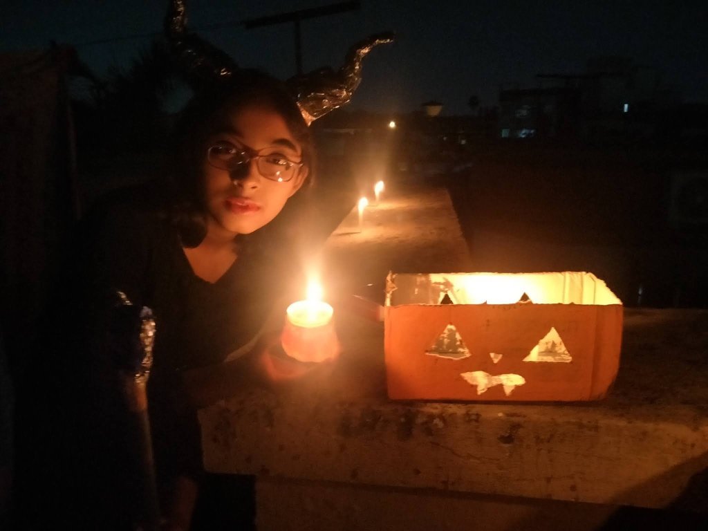 It is true that the child in an adult refuses to die.Some may try to hide the child in them with a serious exterior, some may occasionally indulge in childish behaviour but the fact remains….you cannot kill the child in you. But what happens when you can’t seem to grow up even when you try? Apparently funny but extremely painful to bear.                                                                           Halloween brings out the child in me…why Halloween..any occasion brings out the child in me.Halloween a little more. As the kids grow up the Magic of Halloween seems to fade for them.But I can’t come to terms with that.So I keep on pestering and pestering the children to dress up for Halloween and go on trick-or-treat.They are least interested.I try to evoke their sentiments by posting pictures of previous Halloween…but alas! to no avail.